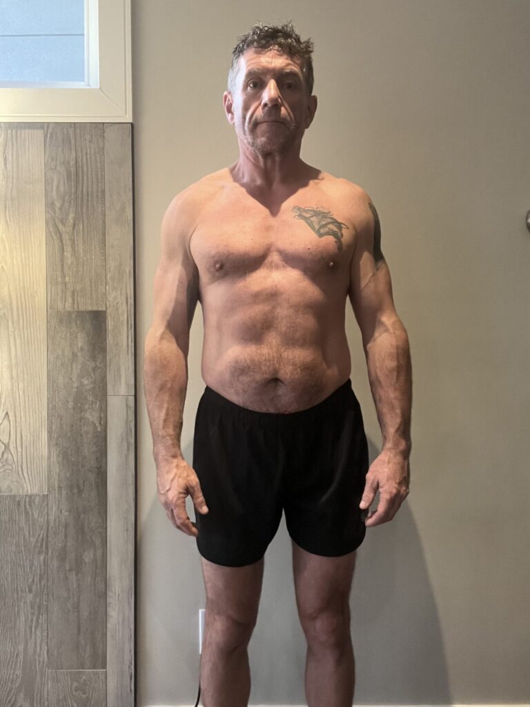 Now, moving forward, the goal is to actually reveal improved body composition results even more while adding lean mass. This is helped him in all areas in terms of mindset, resiliency around stressful times, Chris has been an absolutely exceptional client that thrives in the training environment.